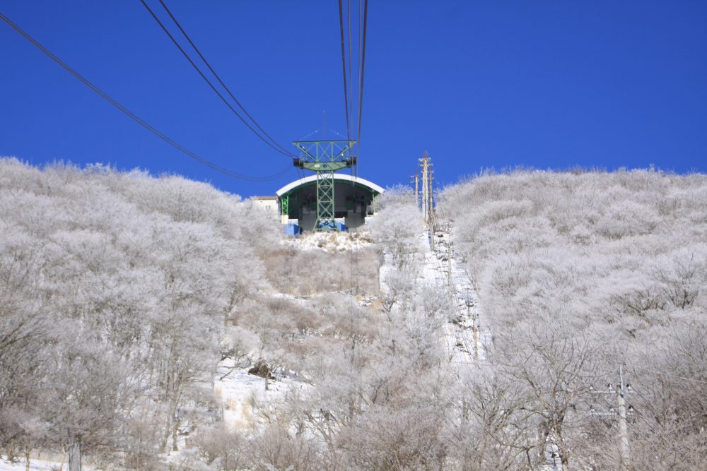 九州最大级别101人乘坐的缆车,距离阿苏九重国立公园·鹤见岳(海拔1,375m)的山上约10分钟。