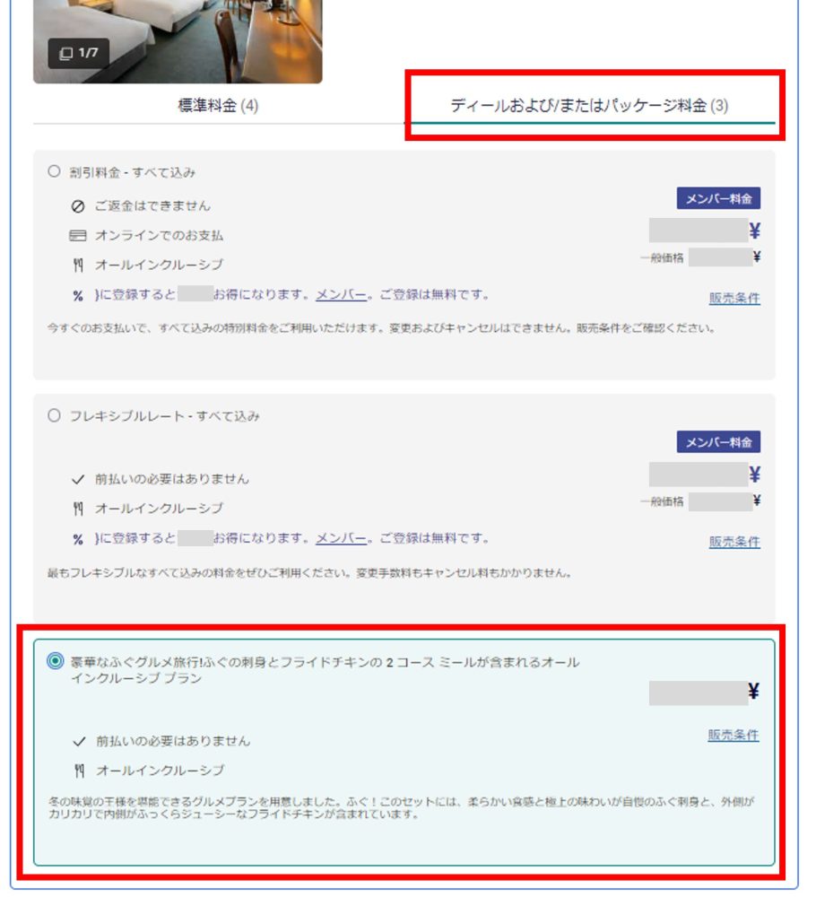 The plan searches for the date and number of guests, selects the room and then selects the "Deal and/or Package Rate"