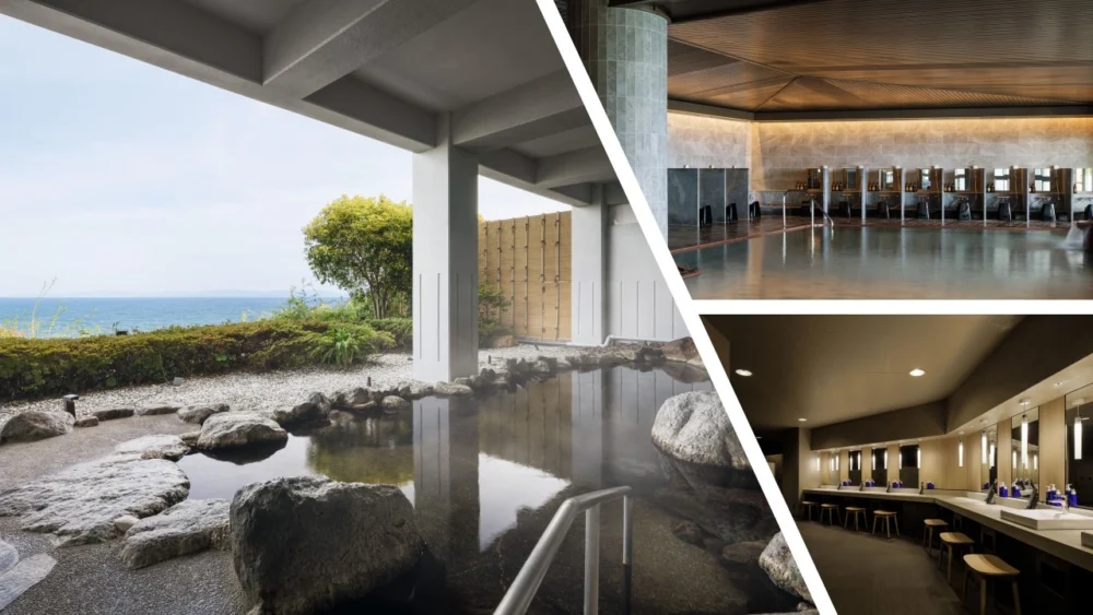 목욕탕에는 내탕, 사우나, 물탕, 온천 노천탕을 완비.