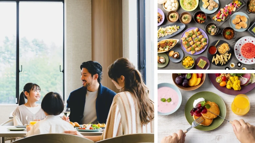 제철 식재료를 살린 저녁 식사 60종류 이상, 아침 식사에서는 70종류 이상의 요리와