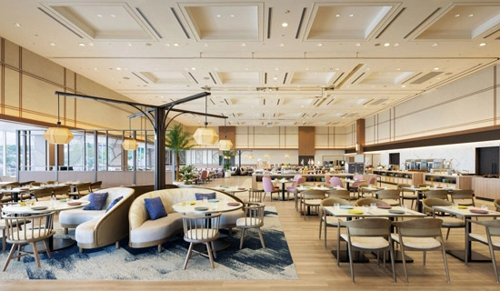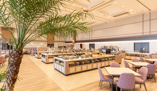 在典雅的內部裝飾和精致氛圍的店內,您可以在自助餐廳享用用當地食材製作的精美料理。